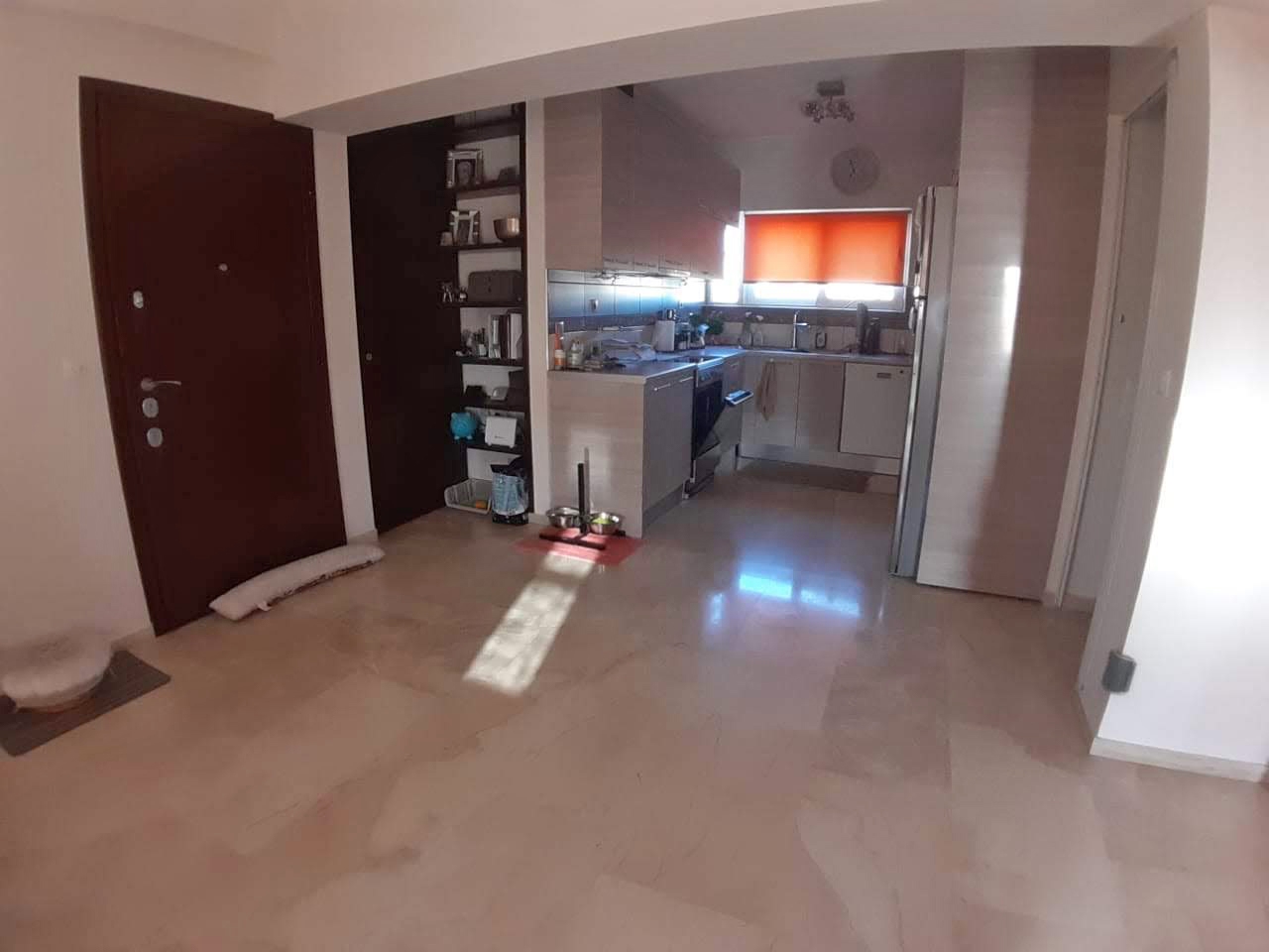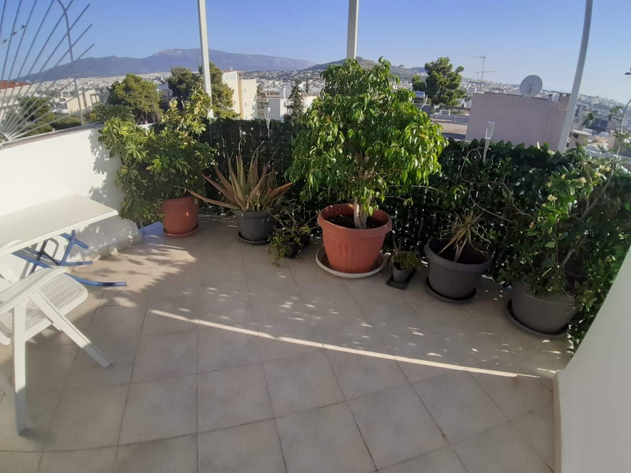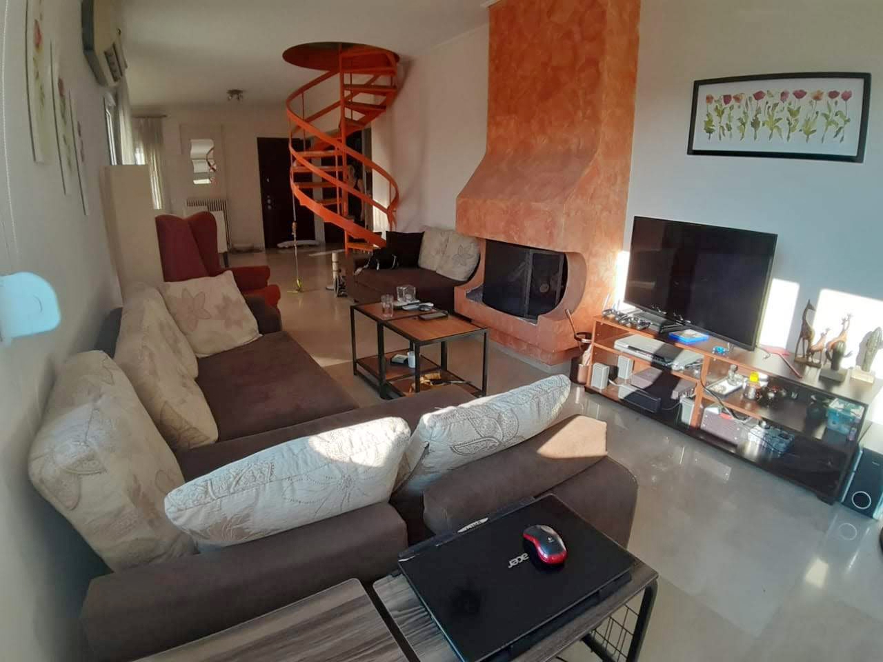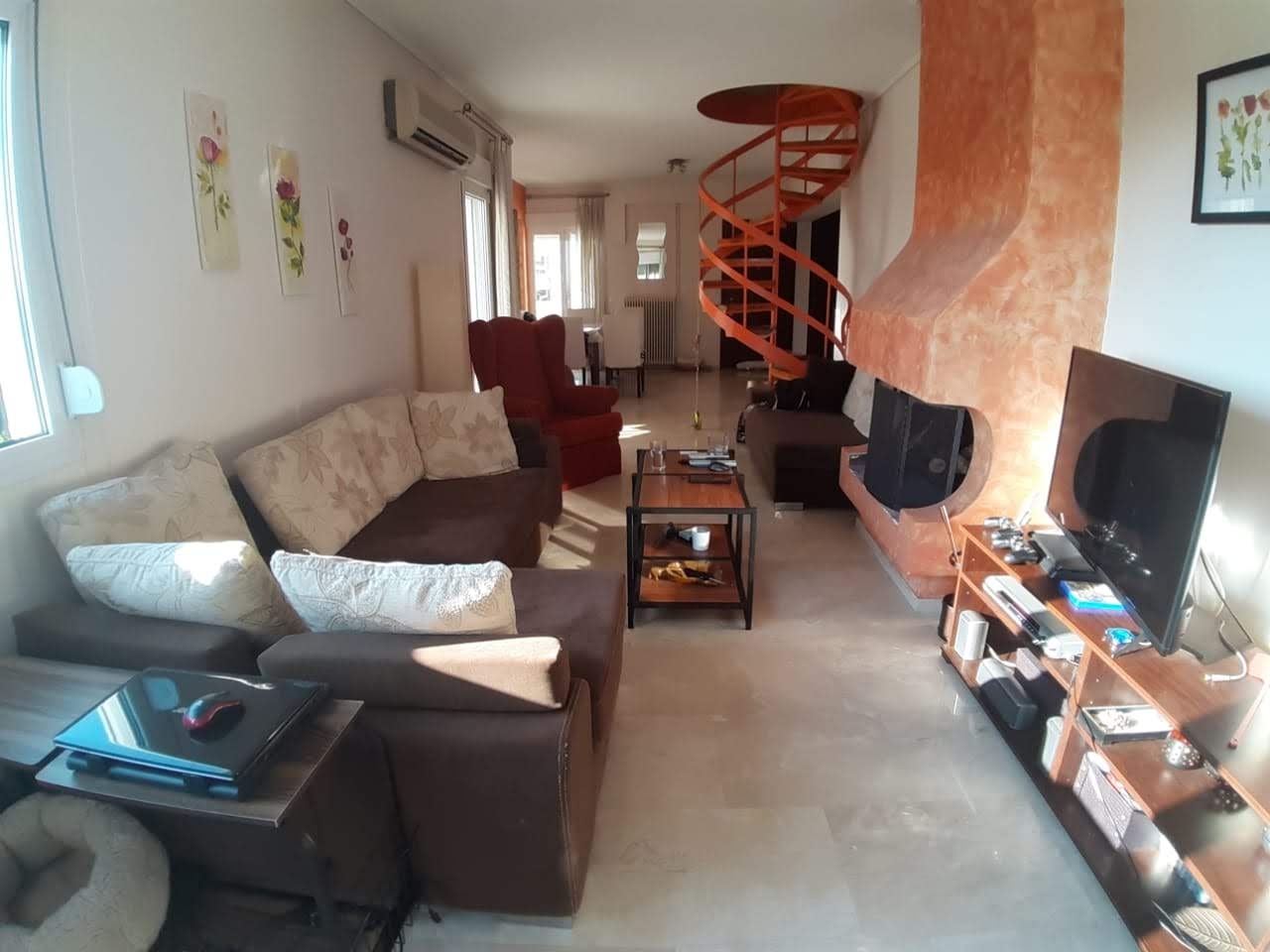 Irakleio property for sale, airy, bright, 2 levels (4th-5th) floor with internal wooden modern staircase, maisonette of 105 sq.m. Construction of 1975. Fully renovated at 2013 (plumbing, electrical, replacement of aluminum, total bathroom renovation, total kitchen renovation, tiles on the balconies, polishing of marble and parquet). Brand new natural gas boiler (2023). 4th floor. 2-level security door. Kitchen, hall, living room with marble floor and fireplace. Perimeter balconies with awnings and electric shutters and tiled floor. 1 bedroom with parquet and fitted wardrobes. 1 bathroom with shower. 5th floor. 1 bedroom. Balcony with electric roller. View up to Piraeus. View around Parnitha, Penteli, Ymittos, Turkovunia. Fully autonomous heating with natural gas, boiler. 3 air conditioners.